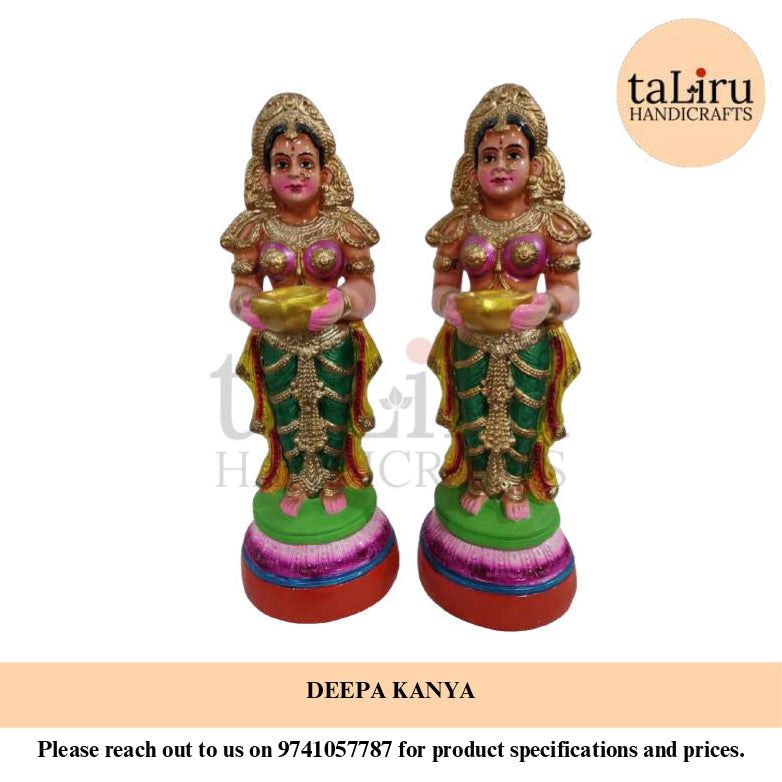 Brighten your festive steps with the Lamp Ladies doll set, showcasing beautifully dressed women carrying traditional lamps. Radiating elegance and festive cheer, this set is perfect for adding light, culture, and warmth to your Golu arrangement.